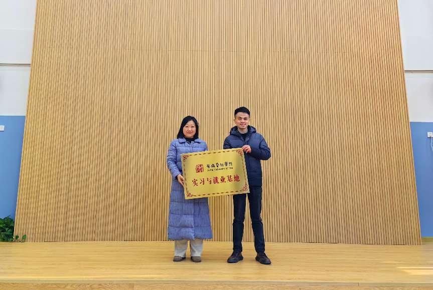 双方代表签署了合作协议,李李和合肥滨湖时光体育发展有限公司副总经理杨远威共同为基地牌匾揭幕,标志着实习就业基地正式成立。