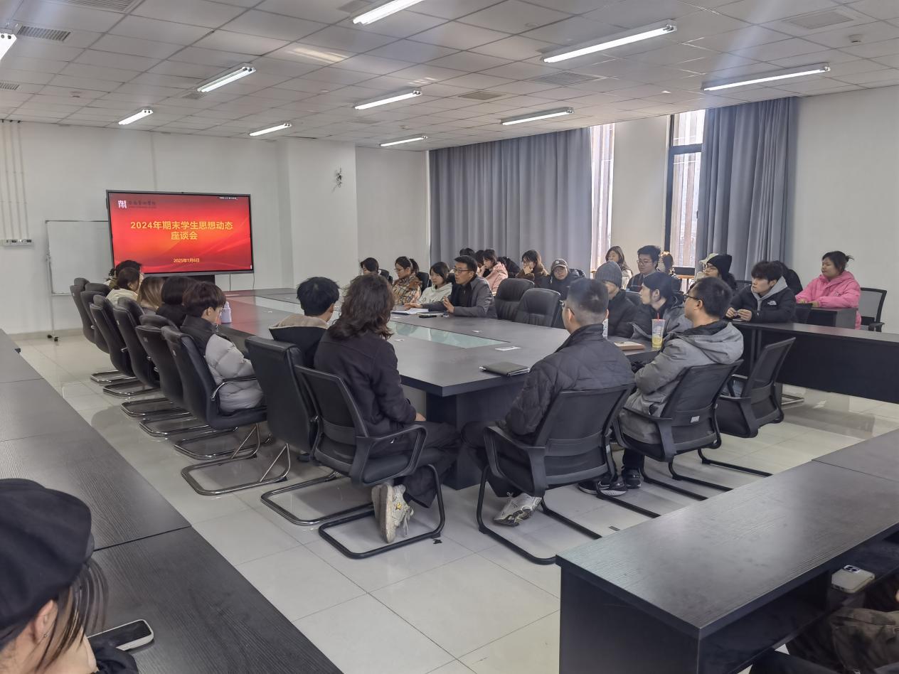 2025年1月6日,美术学院在美术楼307会议室召开了期末学生思想动态座谈会。党总支副书记李卫国出席会议,学管办、团总支负责人、各班级辅导员以及学生代表共30余人参加此次座谈会。