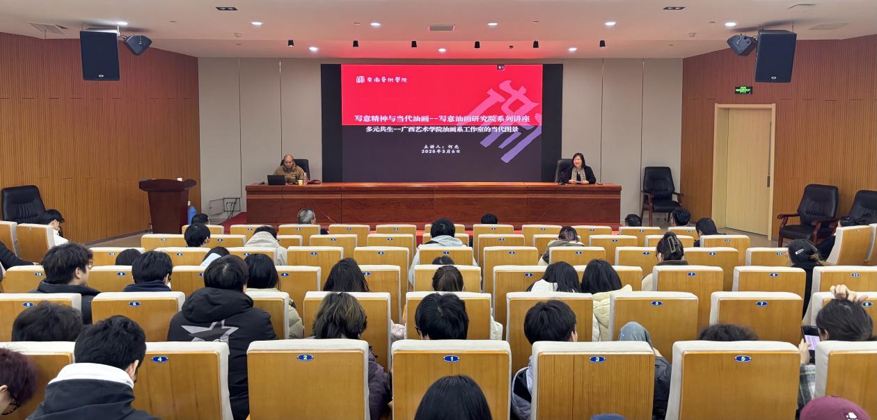 3月6日下午,美术学院写意油画研究院举办“写意精神与当代油画”系列学术讲座。广西艺术学院美术学院何光教授与汪鹏飞教授应邀担任主讲嘉宾,分别以“多元共生——广西艺术学院油画系工作室的当代图景”与“数码绘画与油画创作”为主题展开学术分享。讲座由美术学院副院长李李主持,该活动得到校内外师生的广泛参与。