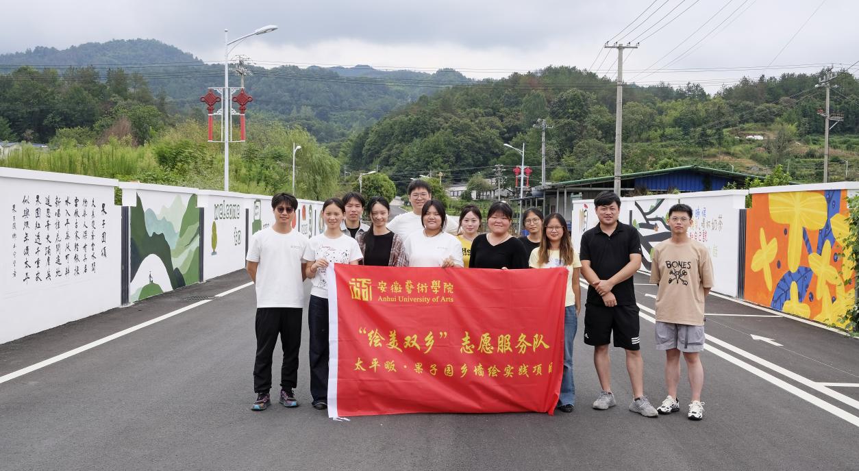 八月底的金寨县果子园乡,绿意盎然,稻浪轻涌。8月27日傍晚,一支年轻的团队带着画笔和颜料走进了这个宁静的乡村——乐动网官网美术学院“绘美双乡”志愿服务队师生一行12人抵达这里,在新学期开学前开启了为期三天的艺术赋能乡村振兴实践活动。