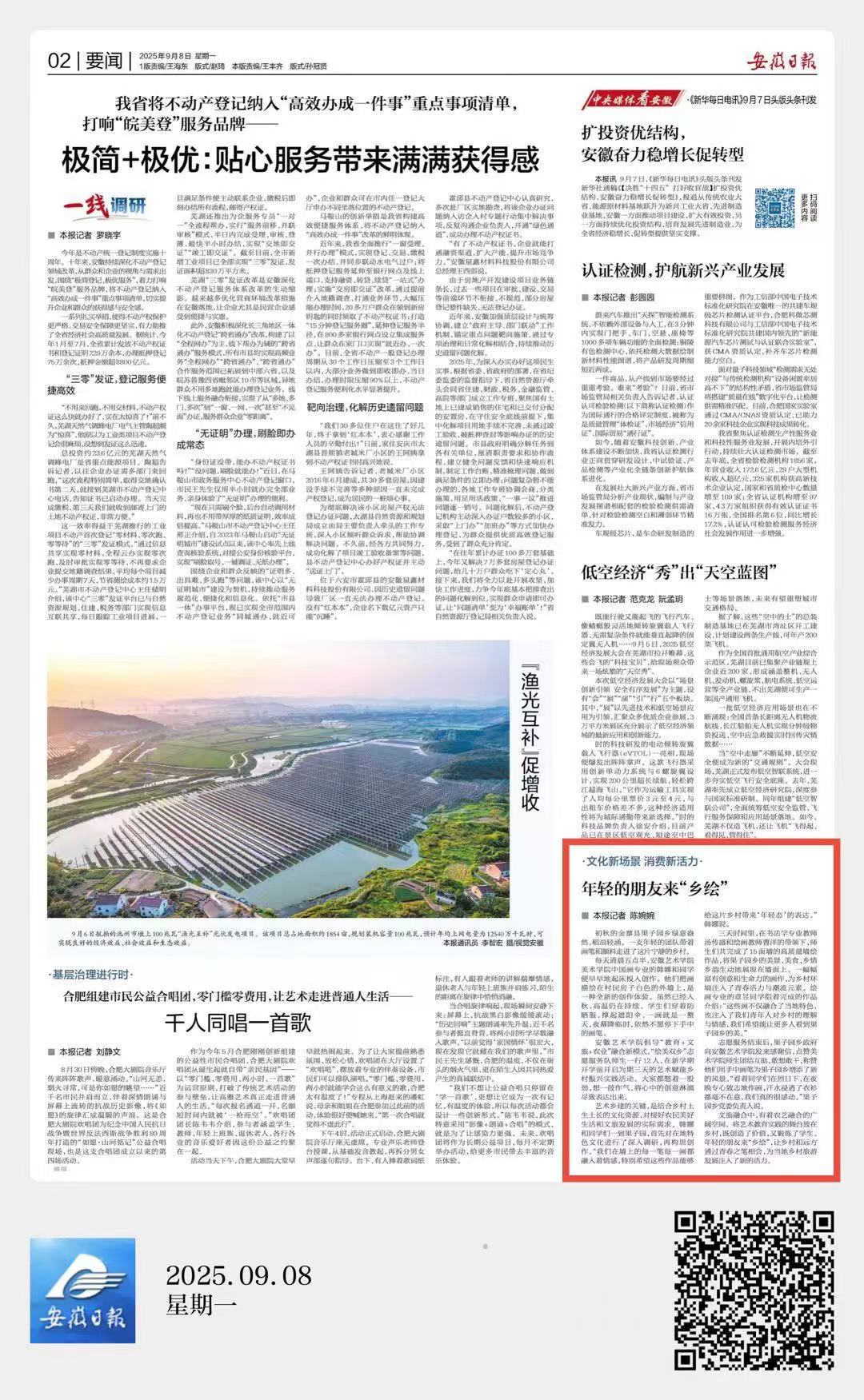 《安徽日报》:《年轻的朋友来“乡绘”》报道乐动网官网美术学院学子赴乡“绘”就文化新图景,以艺术赋能乡村振兴,彰显“教育+文旅+农业”融合发展理念。