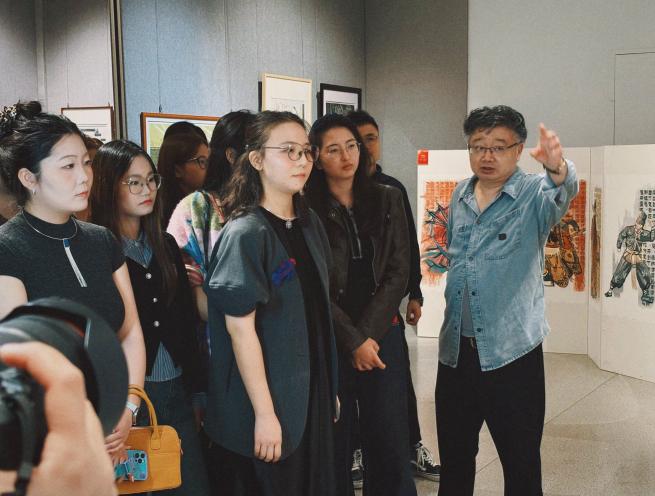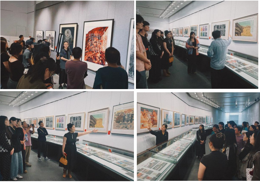 开展当天,我院版画方向师生赴现场观摩学习。观展前,安徽省美协版画艺术委员会主任、我校客座教授师晶首先介绍了本次展览的整体情况。随后,我院教师张婷婷对部分作品进行了专业导赏。在互动环节中,部分参展艺术家们从创作理念、技法运用、情感表达等维度,深入解读了自己作品背后的艺术思考,与我院师生围绕主题性版画的创作实践展开了交流与分享,通过思想碰撞进一步拓展了艺术视野。