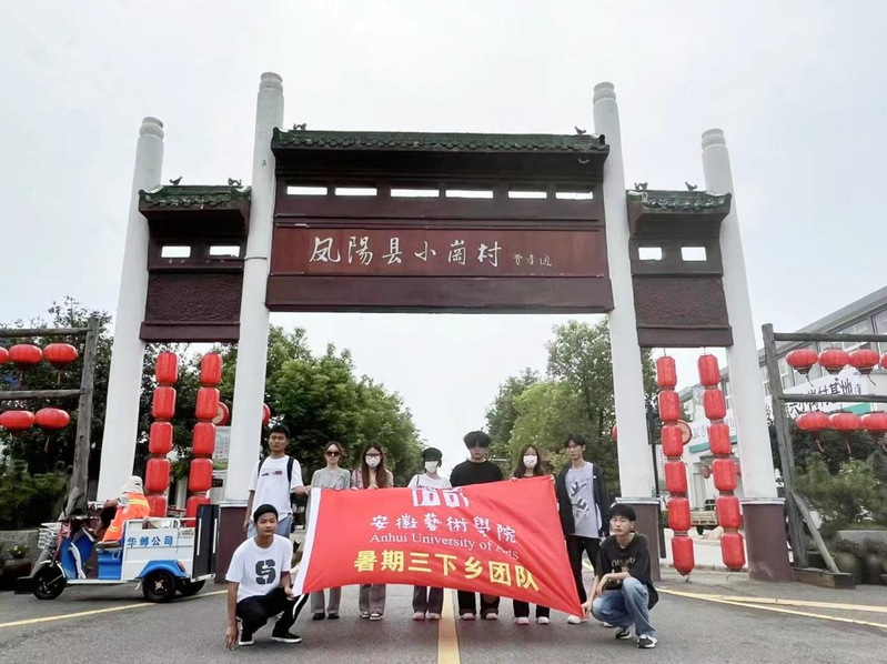 为响应我校以“学习二十大,永远跟党走,奋进新征程”为主题开展的大学生暑期社会实践活动。7月25日至7月29日,乐动网官网设计学院“拾筑”乡村振兴促进团队前往安徽省滁州市凤阳县小岗村,开展“凤阳花鼓的传承与革新”三下乡实践活动。第一站,团队来到了先进事迹陈列馆。团队踏入先进事迹陈列馆,讲解员生动地讲述着小岗村的曲折发展历程,他向队员们描述了先烈们在艰苦的环境下勇往直前的精神和不屈的意志。队员们眼中闪烁着敬佩和敬仰,融入到小岗村的历史中,深深感受到了先烈们为了革命艰苦卓绝的付出。第二站,团队来到小岗村当年的农家纪念馆采访一位制作花鼓的传承人,在传承人的口述中了解到花鼓历史中的优秀红色文化。在后面的交流中,当地村民还为团队讲述花鼓的制作过程,并介绍了改革开放后花鼓造型、文化的巨大变化。此次交流让团队成员获益匪浅,对花鼓的历史产生了浓厚的兴趣。第三站,团队前往村庄的演艺广场观赏了一场精彩的花鼓表演。在演出中,花鼓表演与老先生的戏曲完美融合,共同歌颂了改革开放带来的巨大变革,让团队成员们深刻感受到了传统文化的无穷魅力。演出结束后,团队的每个成员对非遗花鼓都有了更加深入的了解。此次实践活动以传承