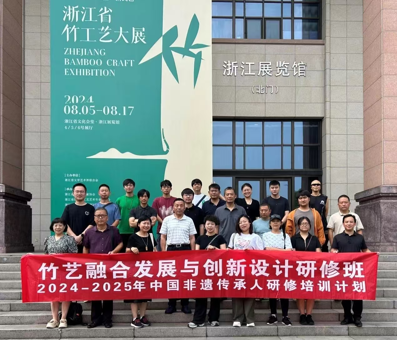 2024年8月14日上午,作为“竹艺融合发展与创新设计”非遗传承人研修班杭州考察的第三站,学员们前往位于杭州市的浙江展览馆,参观了一场别开生面的浙江省竹工艺大展。这次考察不仅是一次视觉盛宴,更是一次精神上的洗礼,让学员们对浙江丰富多样的竹艺及其在...