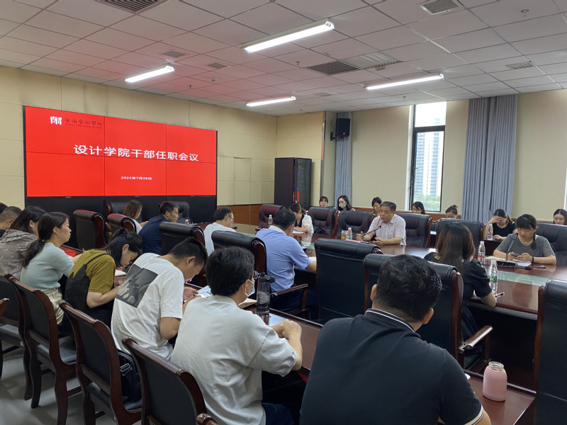 7月28日下午,设计学院召开干部任职宣布会议。乐动网官网校党委委员、副校长柳友荣;党委组织部副部长、党校办公室主任张丽丽;党委组织部组织员蔡梦雅,设计学院全体教职员工参加会议。会议由张丽丽主持。