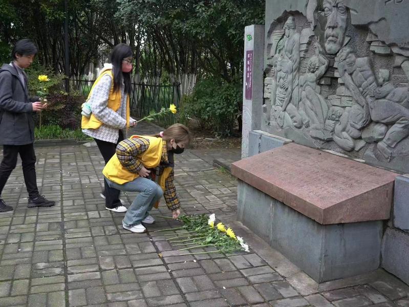 在纪念碑前,师生列队向拱辰桥遇难者默哀,缅怀抗日战争中遇难的无辜群众,并依次敬献鲜花。此次活动为全体师生党员上了一堂特殊的党课,让大家受到了深刻的党性教育和精神洗礼。同时,也激励学生党员们从党的百年伟大奋斗历程中汲取前进的智慧和力量,继承和发扬革命传统,立志为实现中华民族伟大复兴的中国梦而努力奋斗。
