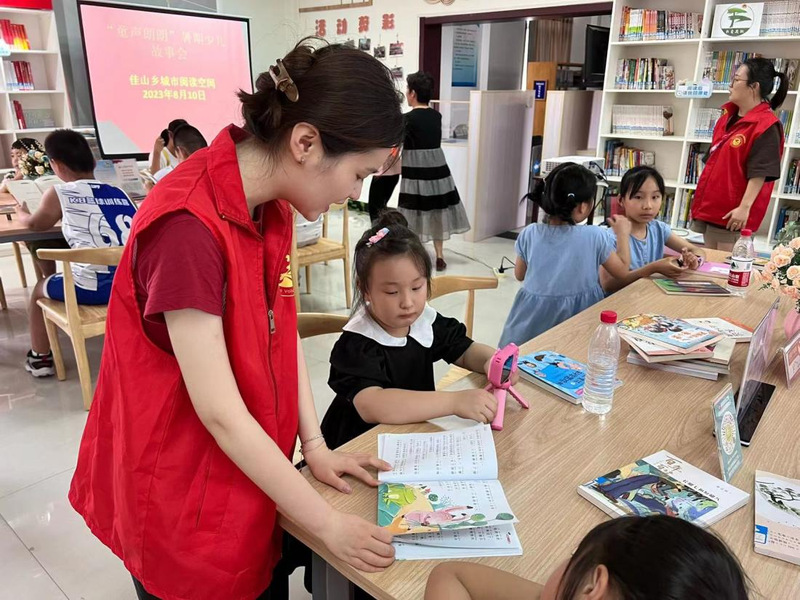 为激发青少年儿童的读书热情,推进全民阅读共识,形成爱读书、读好书、善读书的浓厚氛围,2023年8月10日,2022级非物质文化遗产保护1班李建茹同学积极参与了马鞍山雨山区格林社区开展的“童声朗朗”少儿故事会志愿服务活动,鼓励少年儿童养成良好的阅读习惯和学习兴趣,不断积累和拓展思维,提高言语表达能力和开拓个人视野。
