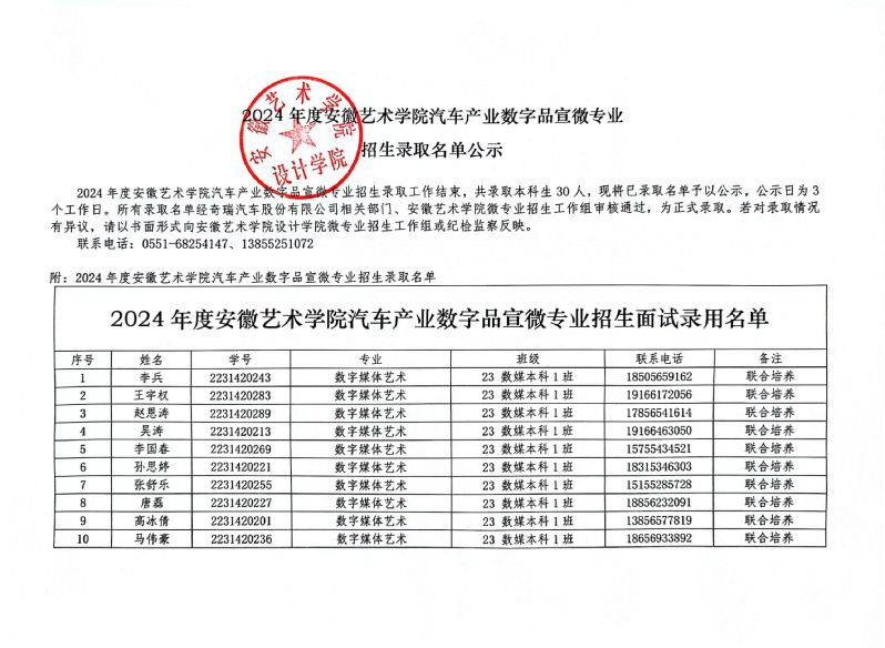 2024年度乐动网官网汽车产业数字品宣微专业招生录取名单公示