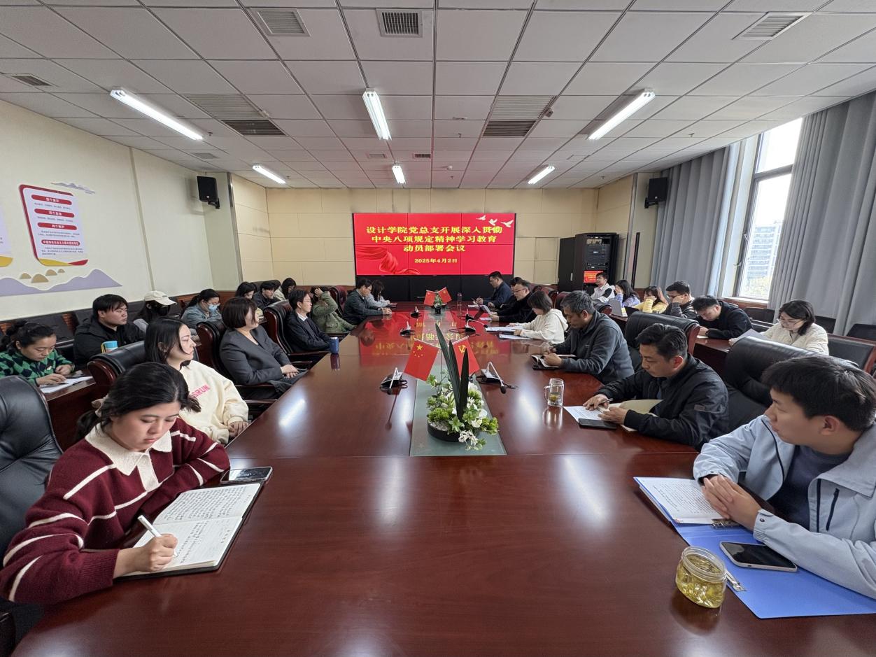 俞璋凌对设计学院深入贯彻中央八项规定精神学习教育进行动员部署。她强调,在全党开展深入贯彻中央八项规定精神学习教育,是党中央作出的重大决策部署,这不仅是巩固拓展主题教育和巩固深化党纪学习教育成果、纵深推进全面从严治党的重要举措,更是今年党建工作的重点任务。全院上下要提高政治站位,深刻认识学习教育的重要意义;要聚焦目标任务,扎实开展学习教育各环节工作;要加强组织领导,确保学习教育取得实效。