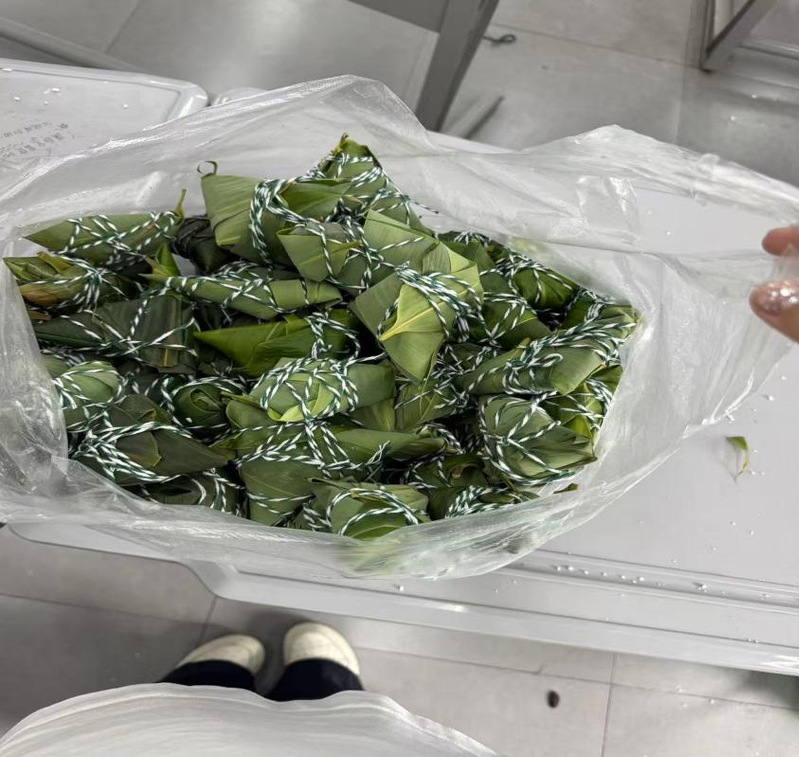 活动结束后,同学们将自己包好的粽子放入准备好的袋子里,由活动负责人统一送至学校一楼食堂煮制。等到晚自习开始时,煮制好的粽子已经由活动负责人放至班级。同学们陆续来到班级,开始品尝由自己亲手包的粽子,粽叶的清香和糯米蜜枣的香甜弥漫在整个空气中。大家一起感受着独属于节日的魅力。