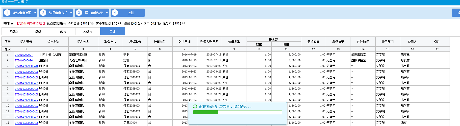 盘点结果确认,并反写部门、人员、存放地点等需要调整的数据,完成此次盘点