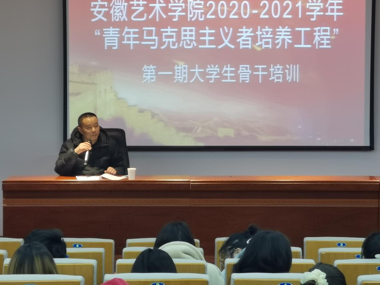 12月24日晚,学校党委学工部部长、学生处处长刘长华在美术楼学术报告厅为乐动网官网“青年马克思主义者培养工程”2020-2021学年第一期大学生骨干培训班学院授课。