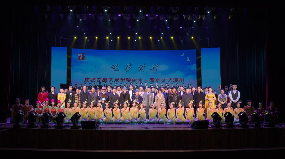 在欢快的旋律中,文艺演出拉开序幕,舞者翩翩而起,歌者放声歌唱,“举杯吧!朋友”,一句深情的咏叹,饱含着对未来的祝福。由四位来自安徽广播电视台的教师演绎的朗诵《开拓者》,赞美了安艺建设者筚路启山林、栉风砥砺行的创业精神,背景视频回顾了7年筹建之路的一个个重要时刻,英才修学府、荒原筑杏坛,时光的叙事让人感动。黄梅戏经典唱段《江山美景万年长》意境高远,我校黄梅戏专业教师、国家一级演员汪晓明扮相儒雅,功力深厚,获得阵阵掌声。原创花鼓灯舞蹈《花落花开》美轮美奂,讲述了花鼓灯艺术代代传承的故事,也展示着安艺人弘扬安徽艺术的担当。浪漫的灯光下,屡获国际钢琴比赛大奖的青年教师侯艺翔,为大家演奏了李斯特的作品《追雪》以及舒曼《狂欢节》选段,精湛技艺令人赞叹,悠扬琴声使人陶醉。男中音张祖顺和女高音宁艺轩演唱的二重唱《让我们携手同行》选自莫扎特的经典歌剧《唐璜》,两人表演生动,音色华丽,带领观众走进充满魅力的歌剧世界。原创花鼓灯舞蹈《希望的田野》聚焦小岗村村民“按红手印”的故事,用艺术记录时代,用作品讴歌人民,展现了安艺人的艺术价值追求。光影秀《追梦路上》通过美术专业毕业生的视角,讲述了学生眼中安艺一年来的变化,创意十足。由乐动网官网交响乐团演奏的《加勒比随想曲》大气磅礴,抒发了安艺人向着星辰大海乘风破浪的豪情,国家一级演员孙来法教授随后在现场乐团伴奏下,深情演绎《再见了大别山》。演出最后,交响乐团和青年合唱团闪亮登场,一曲《布兰诗歌》气势恢宏,为安艺送上美好祝愿!“神州大地新时代凯歌高奏,锦绣江淮美画卷万象更新……”在热烈鼓舞的气氛中,文艺演出圆满结束。