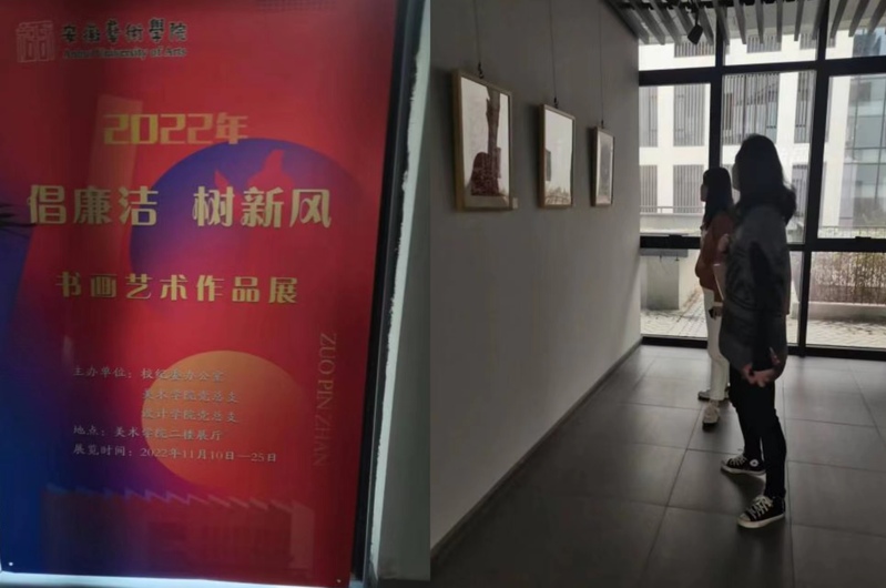 为切实贯彻落实《关于加强新时代廉洁文化建设的意见》,根据学校“月月学、廉常在”廉政教育计划,11月14日,团委党支部参观“倡廉洁 树新风”书画艺术作品展。