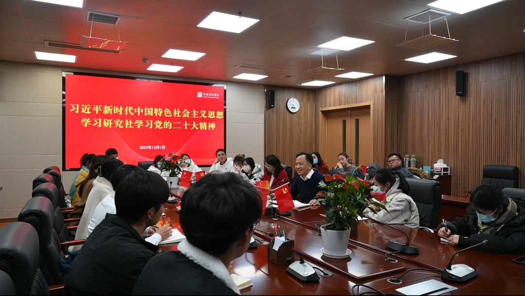 12月1日下午6点,校党委书记周明洁在综合楼823会议室与学校“习近平新时代中国特色社会主义思想学习研究社”的20多位社员们围绕学习宣传贯彻党的二十大精神进行了交流座谈。校团委书记龙源、副书记孙静(挂职),社团指导老师杨婷婷参加了座谈会。
