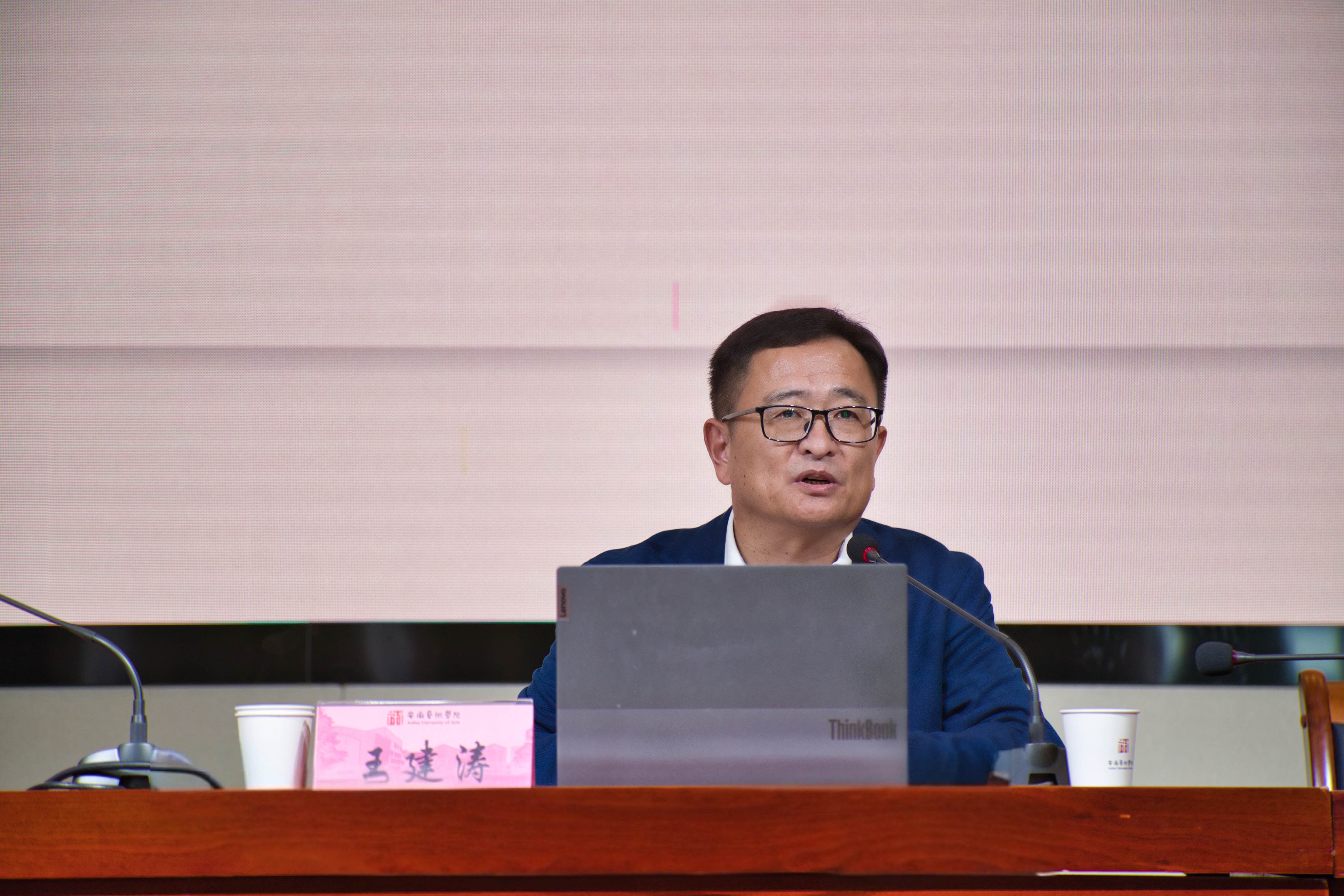 王建涛从阅读与阅读文化、为什么要推广阅读、大学生阅读的促进路径三个方面,讲述了阅读的重要性和阅读的具体方法,倡导大家阅读经典、阅读原著、深度阅读,让阅读成为一种习惯。同时勉励同学们把握好大学时光多读书、读好书、善读书,充分利用好图书馆资源,培养独立思考能力,丰富自身涵养,努力提升艺术和文化素养。