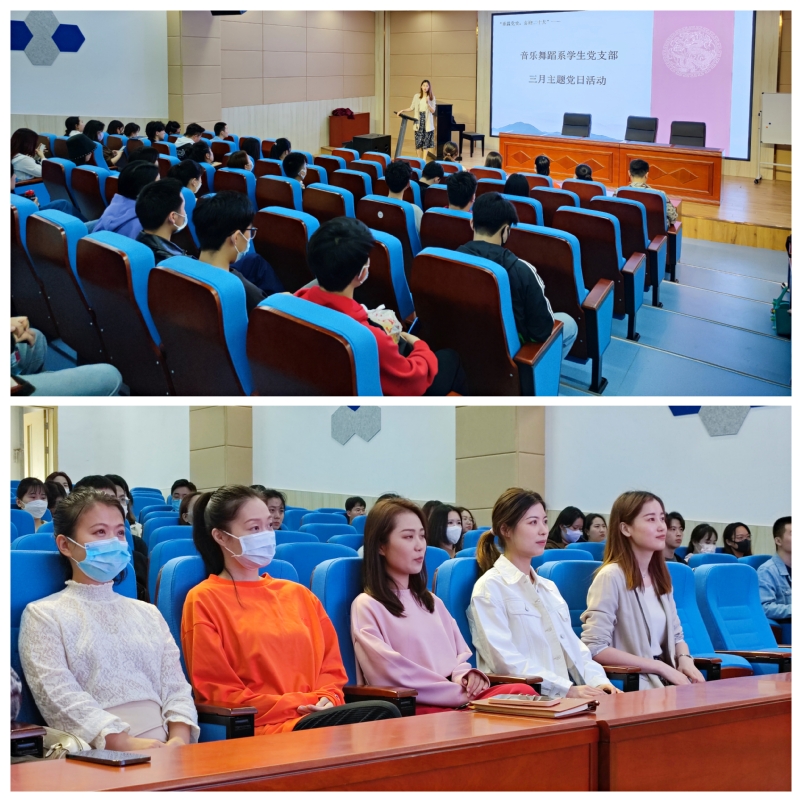 为丰富学生党员党史学习内容,加深党员们对中国共产党百年奋斗历史的理解,2022年3月16日,音乐学院与舞蹈学院第一、第二、第三学生党支部在音乐南楼报告厅联合开展了三月主题党日活动。本次活动为学生党支部2022年“重温党史、喜迎二十大”系列活动之一,活动以观看弘扬中国人民解放军当代精神的电影《红海行动》为主,由第二学生党支部书记张珂主持,第一、第二、第三全体支委成员及部分学生党员参会。