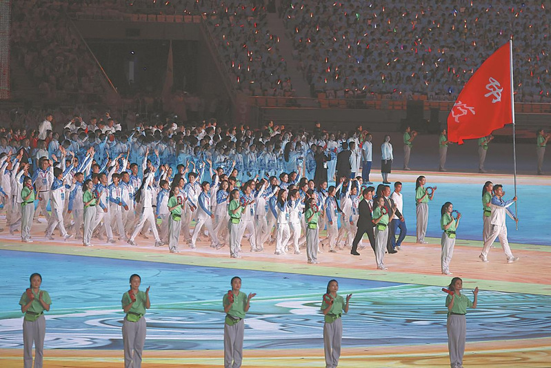 开幕式上,各民族运动员精神抖擞,阔步走来。安徽艺术学院19名师生随安徽代表团精彩亮相,与来自全国近万名运动员和嘉宾逾山越海,共赴一场群众体育的盛会、民族团结的盛会。