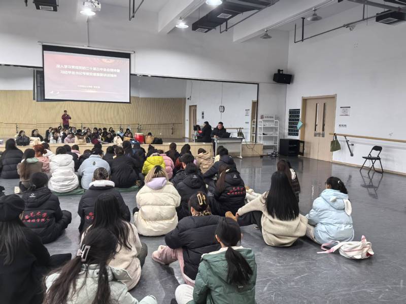2024年12月2日、12月10日分两场对舞蹈学院团学骨干等进行了集中宣讲。2024年12月11日由学校学习贯彻党的二十届三中全会精神暨习近平总书记考察安徽重要讲话精神宣讲团成员,马克思主义学院教授朱哲恒老师,在舞蹈学院303教室对学生开展集中宣讲。