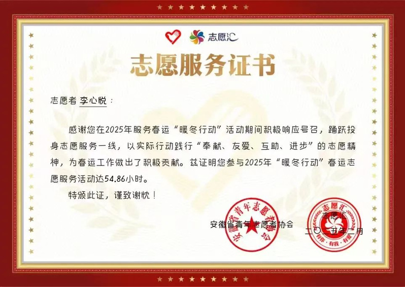 在参加这次志愿活动中,我在宿州市快客站做志愿者,感觉快客站就像一个小型社会,五湖四海的人带着不同的故事在这里汇聚又分散。在一次次服务中,我学会了细致耐心解决问题,培养了自己的同理心,帮助他人让我感到内心充实和喜悦,感受自身的作用和价值,也让我更加珍惜生活中的点滴善意!