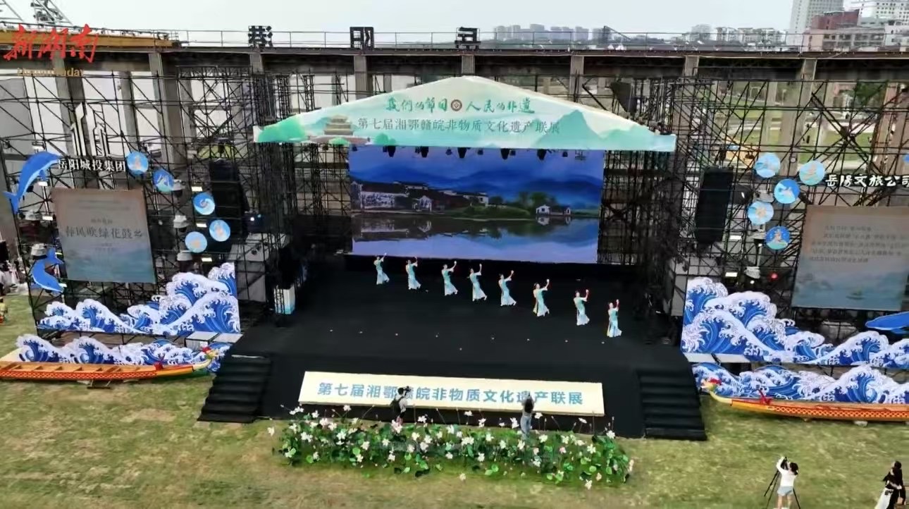 5月24日,第七届湘鄂赣皖非物质文化联展在湖南岳阳盛大开幕,来自湘鄂赣皖四省的文旅厅领导、非物质文化遗产传承人以及众多文化爱好者齐聚一堂,共同见证这一文化盛事。开幕式上,舞蹈学院与凤阳县文化馆共同完成开幕舞蹈表演《春风吹绿花鼓乡》。