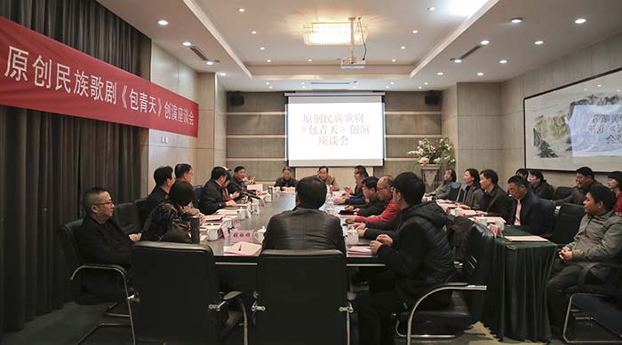 11月12日上午,原创民族歌剧《包青天》在合肥召开创演座谈会。中共安徽省纪委宣传部副部长陈红星,中共安徽省委宣传部文艺处处长范伟军,安徽省文化厅艺术处处长侯进、副处长钱梅,安徽省教育厅体卫艺处副调研员储修杰等指导单位代表,著名作曲家、《包青天》作曲兼编剧莫凡,中央戏剧学院教授、博导、著名导演廖向红,《歌剧》杂志主编游暐之,山东歌舞剧院院办主任、男低音歌唱家张楠等国内专家,安徽省文联副主席、安徽省音协主席、著名作曲家盘龙,合肥师范学院音乐学院院长罗可曼教授,安徽艺术职业学院国家一级作曲谢国华等省内学者,《包青天》导演周爱宝教授、声乐指导曹玉萍教授及出品人孙来法教授及主演代表等主创人员一共30余人与会。研讨会由学院党委书记、院长、歌剧领导小组组长周之虎教授主持。学院党委副书记、歌剧领导小组副组长沈端良,副院长、歌剧领导小组副组长张晶出席研讨会,歌剧领导小组成员列席研讨会。