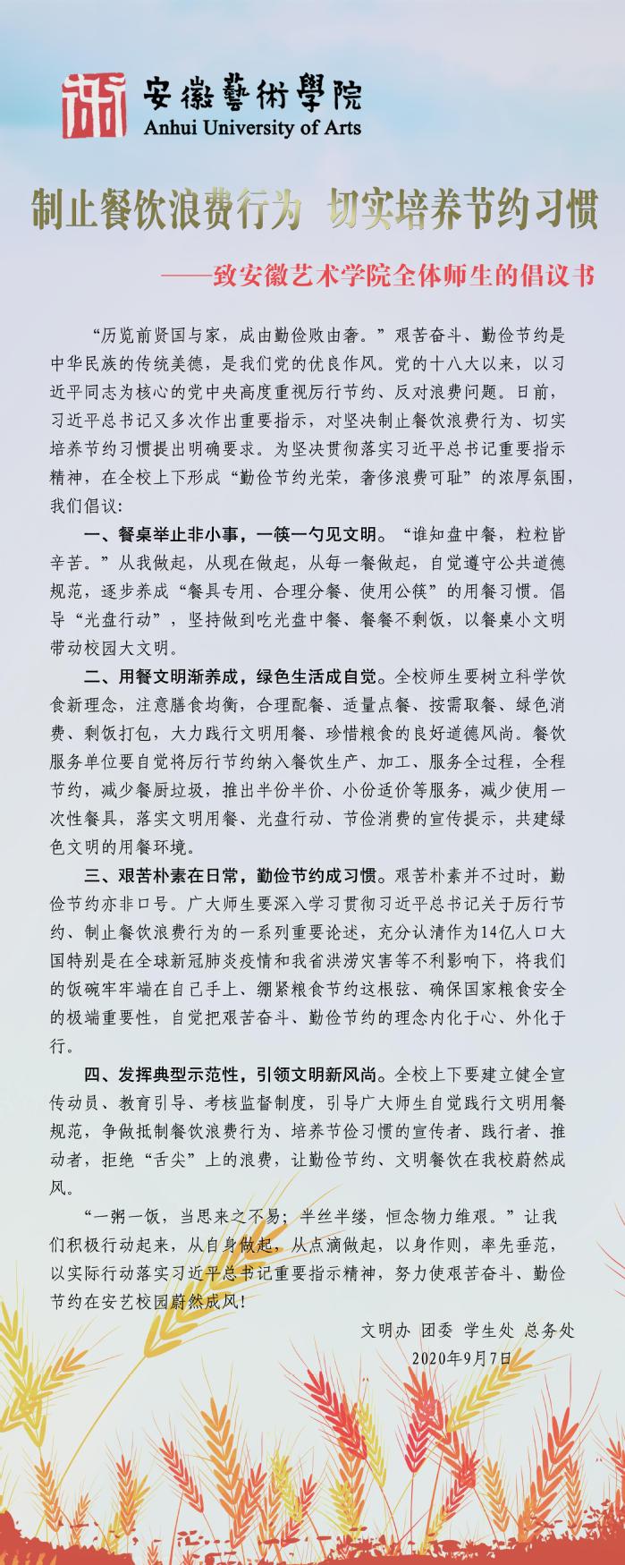 制止餐饮浪费行为 切实培养节约习惯——致全体师生的倡议书
