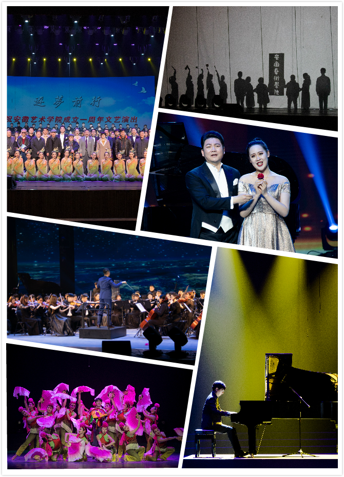 在欢快的旋律中,文艺演出拉开序幕,舞者翩翩而起,歌者放声歌唱,“举杯吧!朋友”,一句深情的咏叹,饱含着对未来的祝福。由四位来自安徽广播电视台的教师演绎的朗诵《开拓者》,赞美了安艺建设者筚路启山林、栉风砥砺行的创业精神,背景视频回顾了7年筹建之路的一个个重要时刻,时光的叙事让人感动。黄梅戏经典唱段《江山美景万年长》意境高远,我校黄梅戏专业教师、国家一级演员汪晓明扮相儒雅,功力深厚,获得阵阵掌声。原创花鼓灯舞蹈《花落花开》美轮美奂,讲述了花鼓灯艺术代代传承的故事,也展示着安艺人弘扬安徽艺术的担当。浪漫的灯光下,屡获国际钢琴比赛大奖的青年教师侯艺翔,为大家演奏了李斯特的作品《追雪》以及舒曼《狂欢节》选段,精湛技艺令人赞叹,悠扬琴声使人陶醉。男中音张祖顺和女高音宁艺轩演唱的二重唱《让我们携手同行》选自莫扎特的经典歌剧《唐璜》,两人表演生动,音色华丽,带领观众走进充满魅力的歌剧世界。原创花鼓灯舞蹈《希望的田野》聚焦小岗村村民“按红手印”的故事,用艺术记录时代,用作品讴歌人民,展现了安艺人的艺术价值追求。光影秀《追梦路上》通过美术专业学生的视角,讲述了学生眼中安艺一年来的变化,创意十足。由乐动网官网交响乐团演奏的《加勒比随想曲》大气磅礴,抒发了安艺人向着星辰大海乘风破浪的豪情,国家一级演员孙来法教授随后在现场乐团伴奏下,深情演绎《再见了大别山》。演出最后,交响乐团和青年合唱团闪亮登场,一曲《布兰诗歌》气势恢宏,为安艺送上美好祝愿!“神州大地新时代凯歌高奏,锦绣江淮美画卷万象更新……”在热烈鼓舞的气氛中,文艺演出圆满结束。(撰稿:陈明 摄影:胡寅生 殷俊 审定:吴孔铎)