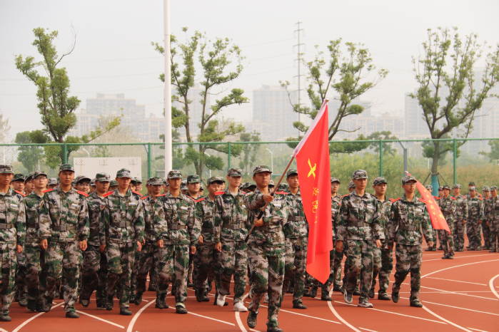 随着一声令响,国旗护卫队昂首挺胸,整装齐发,他们以严肃而一丝不苟的正步踏向升旗台。全场肃穆,军训汇报会在慷慨激昂的国歌中拉开序幕。在旗手带领下,全体791名学生的13支连队方阵依次入场。伴随阅兵主持人感情充沛的念白,各连队方阵以齐步与正步交替踏出,分列主席台正前方。13个方阵姿态整齐、口号嘹亮,13个连队步伐矫健、各显风采。