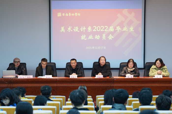 12月17日中午,美术设计系在美术楼一楼报告厅召开2022届毕业生就业动员会。校学生处处长刘长华参加动员大会。系党总支书记、主任罗耀东,党总支副书记李卫国、副主任李李到会动员,学生管理办公室主任夏守军主持会议。