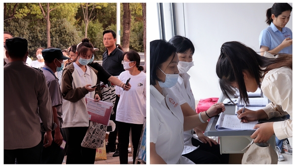 学校严格执行上级有关部门疫情防控要求,制订防疫工作方案和突发事件应急处置预案。保卫处在校门前依次核查新生录取通知书和“两码一温”。