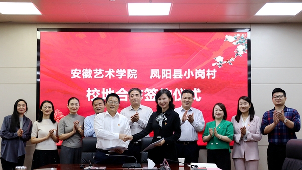 9月28日下午,学校与凤阳县小岗村校地合作签约仪式在综合楼823会议室举行。党委委员、副校长柳友荣出席签约仪式。党委委员、办公室主任曹晓富,党委委员、宣传(统战)部部长王琍琍,凤阳县委常委、小岗村党委第一书记李锦柱参加签约仪式。