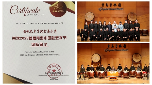 近日,2023首届青岛中国鼓艺术节在青岛音乐厅盛大开幕,我校教师陈懿凡带领的乐动网官网打击乐团与全国各地的顶尖艺术家及团队同台竞演,脱颖而出,获团队金奖。