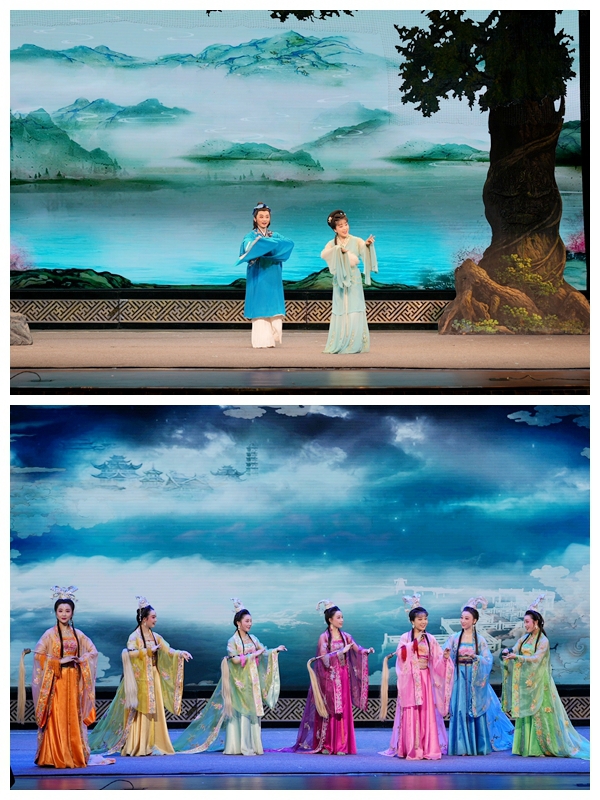 七仙女和董永分别由国家二级演员江李汇、谢军饰演。演员们精致的扮相一上台,就吸引了同学们的目光,现场掌声雷动。淳朴流畅、明快抒情的曲调引人入胜,质朴细致、真实活泼的戏曲故事让现场观众沉浸于中华传统戏曲的深厚魅力中。