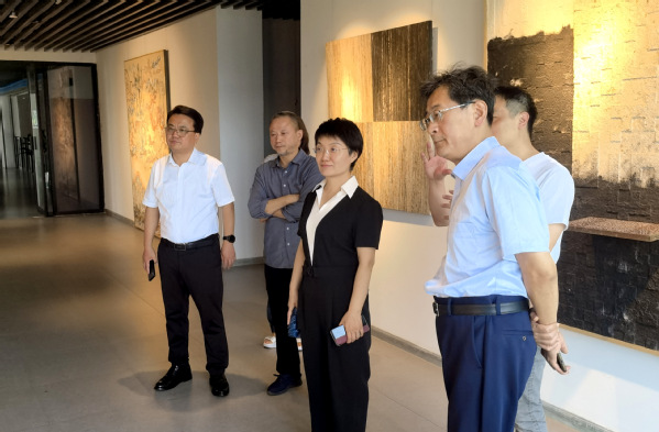 近日,党委书记韩军到美术学院参观国家艺术基金2022年度传播交流推广资助项目——综合材料绘画作品展。行政负责人沈端良参加。