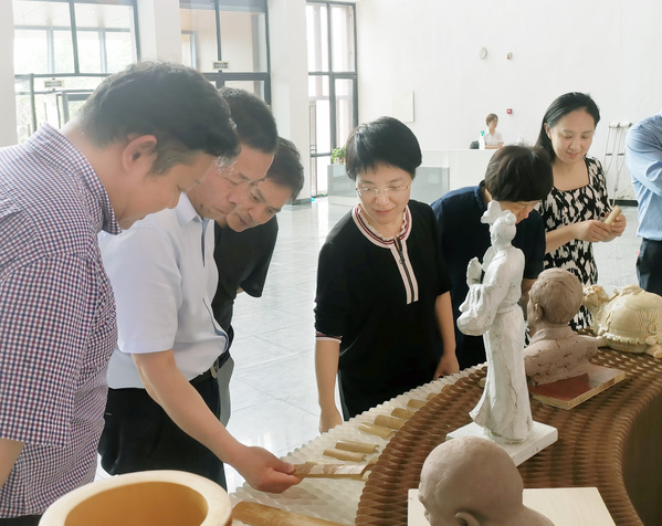 6月16日中午,由安徽省劳动教育中心主办、设计学院承办的“礼敬中华传统文化”手工劳动坊艺术展在综合楼大厅开展。党委书记韩军,党委副书记、校长樊嘉禄参观展览。党委委员、副校长柳友荣参加。党委委员、人事处处长、戏剧学院党总支书记曹晓富观展。行政负责人沈端良参加。