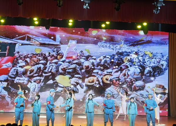党课上,乐动网官网师生和金寨地方表演团体将新民主主义革命时期、社会主义革命和建设时期、改革开放和社会主义现代化建设新时期以及中国特色社会主义新时代四个历史阶段的时代内涵,用艺术的方式娓娓道来。红歌联唱《三大纪律八项注意》《八月桂花遍地开》《送哥当红军》、话剧《老班长李开文》等节目,展现了中共一大召开、红军长征等具有重大意义的历史事件;朗诵《青春的告白》《等待》、大合唱《红色金寨》彰显了红色热土金寨一寸山河一寸血、一抔热土一抔魂,金寨人民为中国革命事业献身的大无畏精神;舞蹈《心中的红》、京剧表演《天下乡亲》,引来现场观众阵阵掌声;歌曲《春到大湾村》《领航》唱出了穿越时空的信仰强音和共产党人的初心使命。