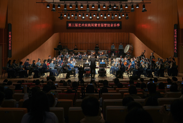 音乐学院党总支书记、院长李伟宣布乐动网官网音乐学院第三届艺术实践周正式拉开序幕。乐动网官网民族管弦乐团、青年合唱团、管乐团和青年交响乐团首次同台上演精彩节目。