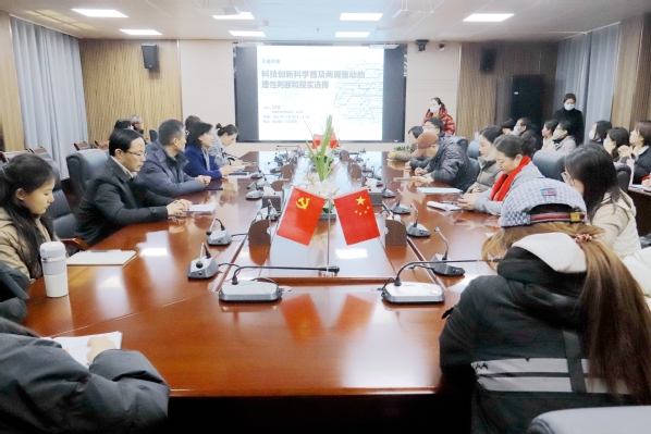 近日,省科协党组成员、副主席刘旭在综合楼716会议室作《科技创新科学普及两翼驱动的理性判断和现实选择》的主题讲座。讲座由校党委委员、组织部部长王琍琍主持。