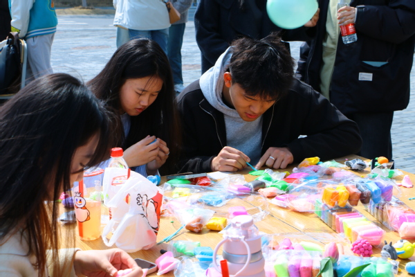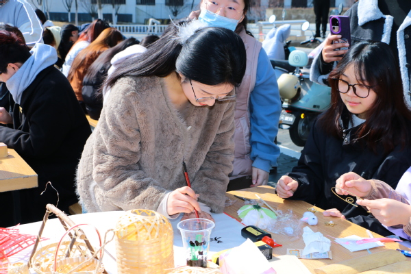 中午11点,由校团委、校学生会组织的手作活动于食堂一楼门口举行。
