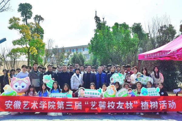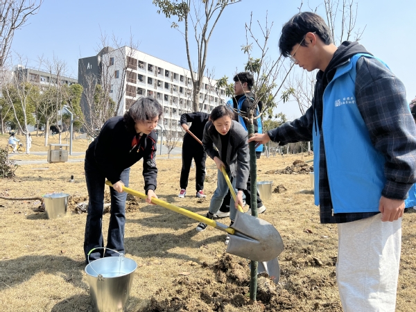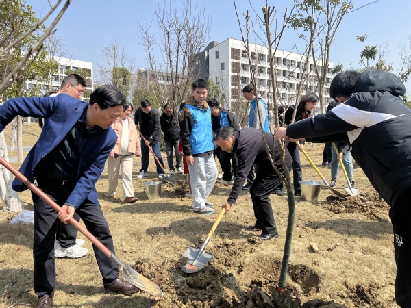 第46个植树节到来之际,校团委、校关工委、国资处、劳动教育研究中心等部门联合举办第三届“艺馨校友林”义务植树活动。校党政班子成员、各职能部门负责人与各专业师生一起挥锹培土,共植希望。