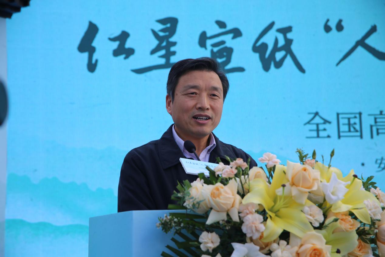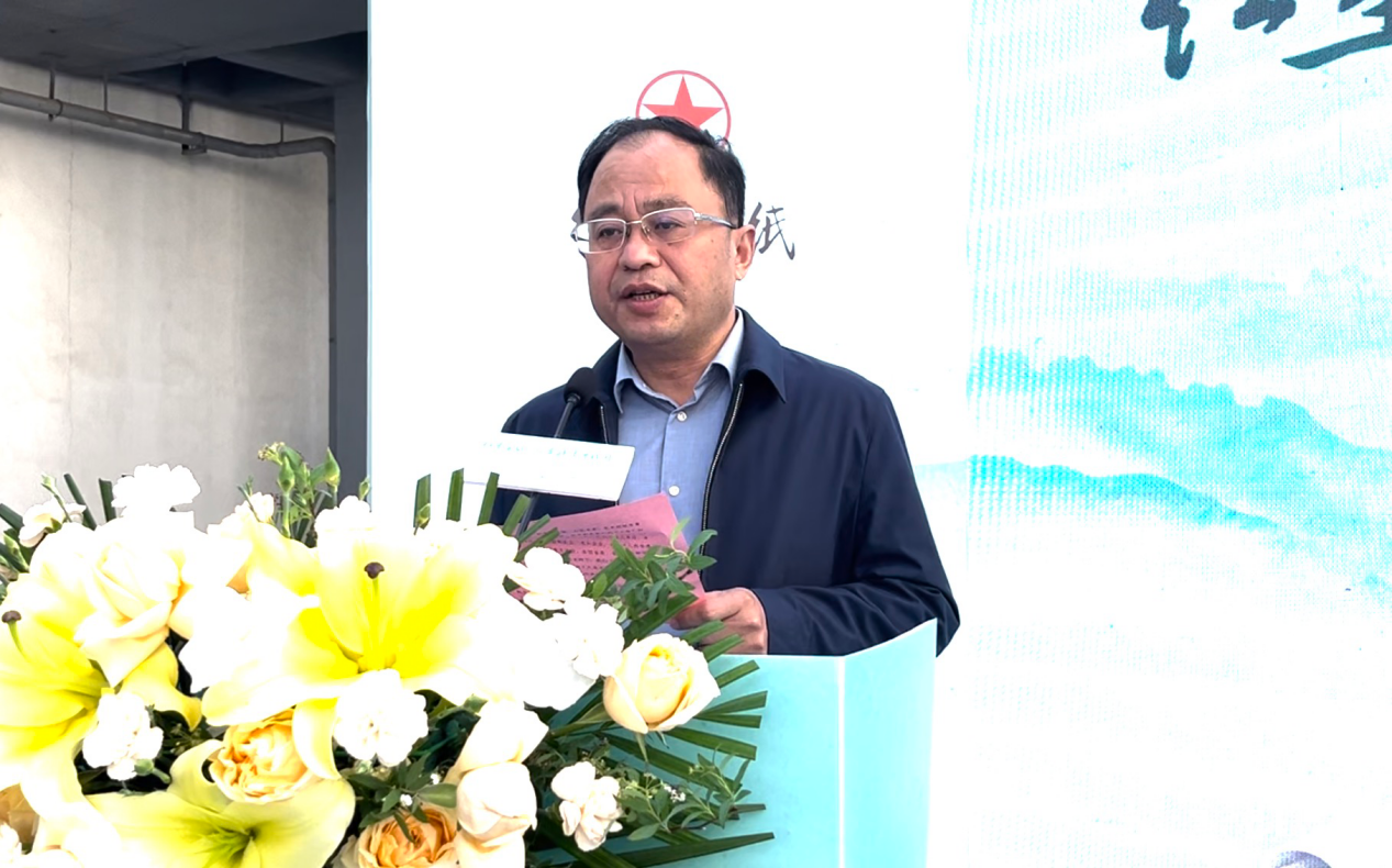 朱大国现场致辞,红星宣纸创建于1951年,已经走过70多年发展历程,是全国最大的手工纸生产企业、宣纸和书画纸标准的起草单位、人类非遗“宣纸传统技艺”的代表性单位。宣纸要做大做强,就必须从小众走向大众;宣纸要扩大影响,就要走进艺术院校,走到年轻人身边,来到同学身边。