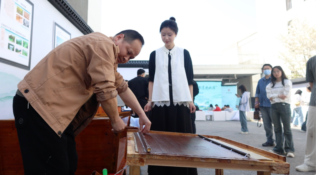 在大国工匠非遗体验区,学生们对捞纸工艺格外感兴趣。传媒学院学生包莹、杨鑫帅在体验捞纸、晒纸之后惊叹地说,完全没有想到,造出一张宣纸需要108道工艺,我们一定要共同守护、传承和弘扬好中华优秀传统文化。(撰稿:尹广富 刘雨涵 摄影:丁开诚 初核:束舒娅 编辑:朱新水 审定:尹广富)
