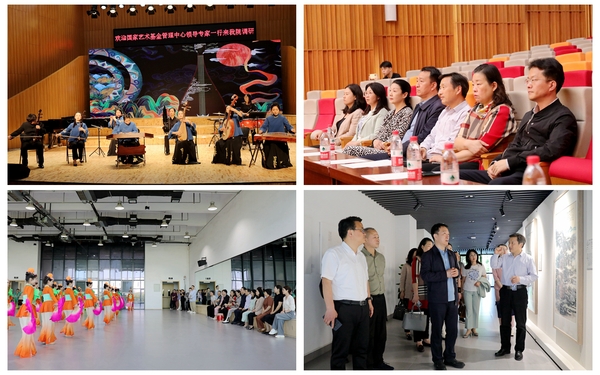 王明亮一行欣赏了民乐重奏《茶马》、弦乐四重奏《梁祝》、钢琴独奏《伊索的寓言》、男声独唱《大徽班》等节目,观看了花鼓灯传统剧目《大花场》,并考察了新安画派研究院、书法研究所等科研平台。