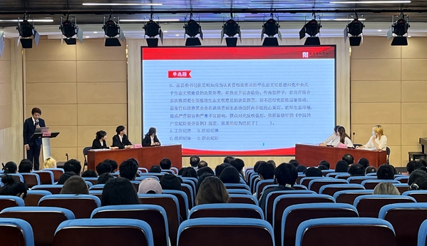 6月5日,由党委组织部、纪委办公室、党委宣传部、团委、马克思主义学院联合主办的大学生“学党纪 明规矩 强党性”知识竞赛校级决赛在音乐南楼报告厅举行。学校党政领导班子出席。