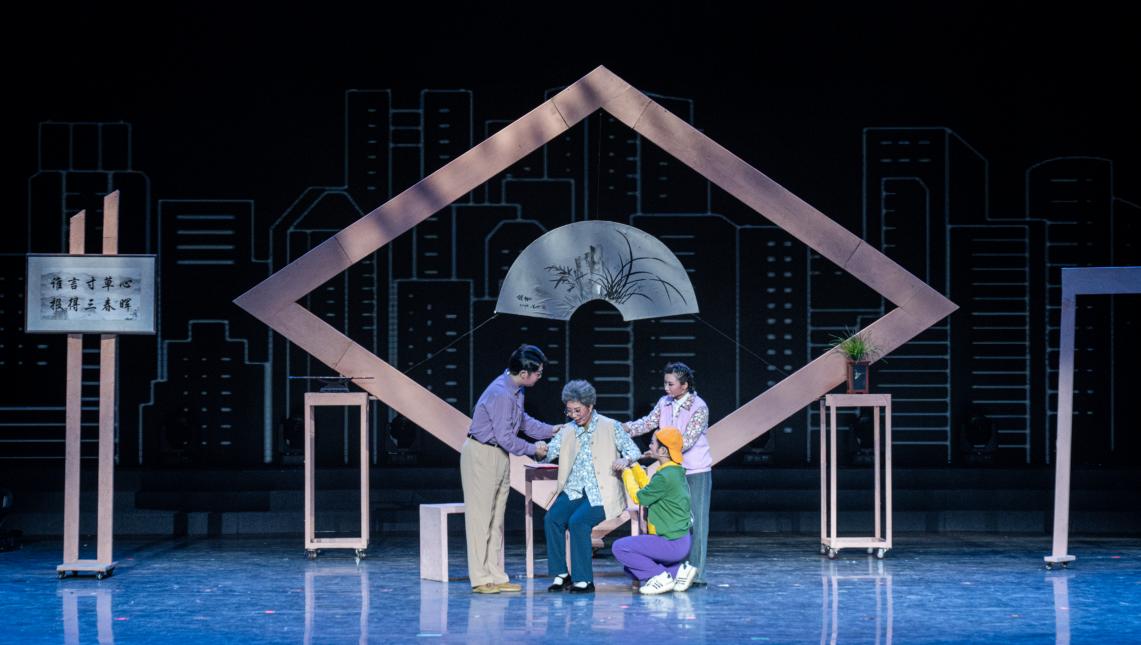 蚌埠医科大学的原创泗州戏小戏《生日礼物》,通过讲述大山深处一位乡村女教师坚守教育事业四十年,退休后回归家庭后的暖故事,体现中国传统文化孝道、家风的传承。