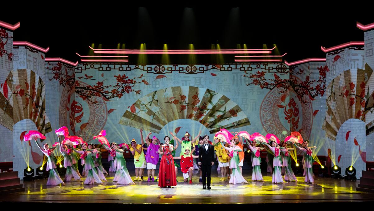 歌舞《乡村有戏》由淮南师范学院师生演绎,旋律明快清丽、节奏极富动感,选取送戏下乡丰富农民文化生活这个细节,展现了产业兴、乡村美、农民富的美好乡村景象,彰显了淮河儿女奋进新时代、追梦向未来、迈向富裕生活的幸福和甜蜜。