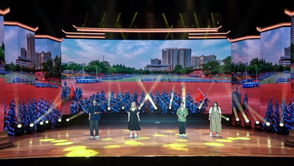 安徽商贸职业技术学院献唱歌曲《溢彩年华》,在描述母校情、师生情、同学情的同时,以隐喻的方式讴歌了党对青年学生的哺育之恩,道出了“我”与党、与祖国、与人民心手相牵的深情,勉励青年学子以实现中华民族伟大复兴为己任,不负韶华,接续奋斗。
