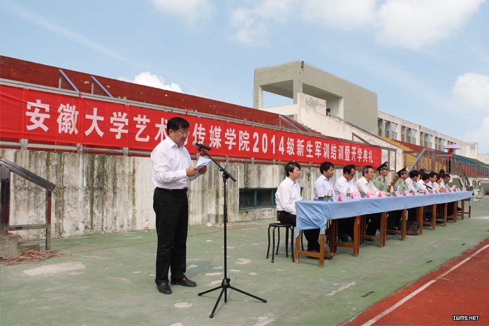 荷花映日笑迎八方学子,丹桂飘香共祝美好未来。9月28日上午,安徽大学艺术与传媒学院2014级新生军训结训暨开学典礼在体育运动场隆重举行。学院领导周之虎、赵枞安、胡献平,解放军电子工程学院二系主任申桂林,学院各系部、各部门主要负责人在主席台就座。各系教务秘书、学生管理秘书,全体班主任及2014级新生参加了此次典礼。典礼由副院长胡献平主持。
