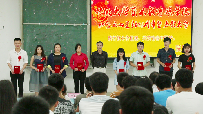 接着,院团委书记刘长华副教授发表了热情洋溢的讲话。他向获奖的集体和个人表示了祝贺,总结了学院团组织过去一年所取得的成绩。刘书记指出,校业肇始,创业维艰,全院教职员工正团结一心,攻坚克难,以百倍的干劲和豪情书写着建设一流院校的辉煌之歌。作为艺术与传媒学院第一届的团员青年,理应继承和弘扬五四精神,坚持“党有号召、团有行动”的光荣传统,汇聚成一支敢于有梦、勇于追梦、勤于圆梦的生力军,在学院跨越式大发展和文化强省的建设中奉献青春、智慧和力量。